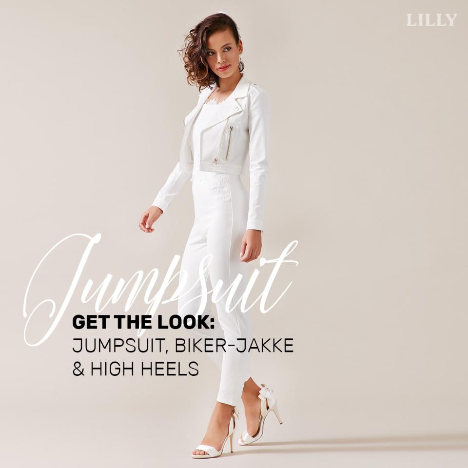 Så er vores buksedragt og creme-farvede Biker-Jacke spot-on!